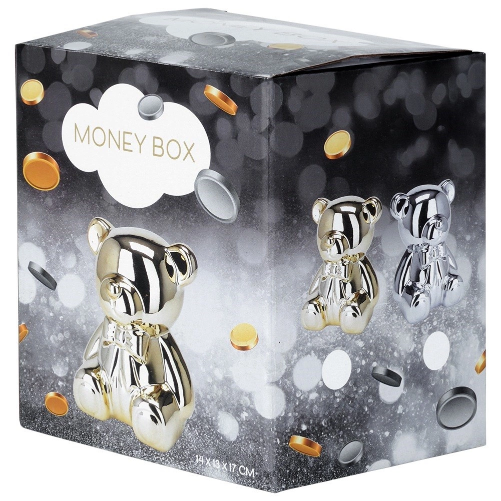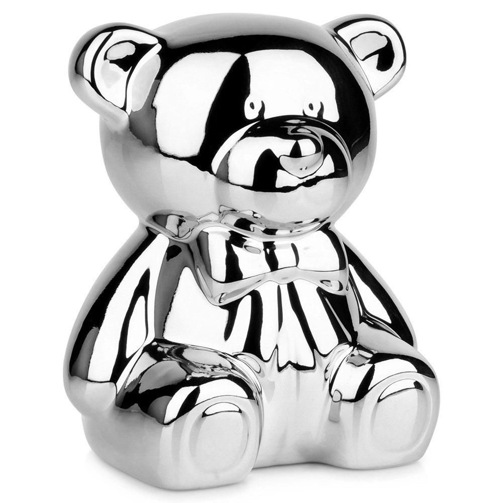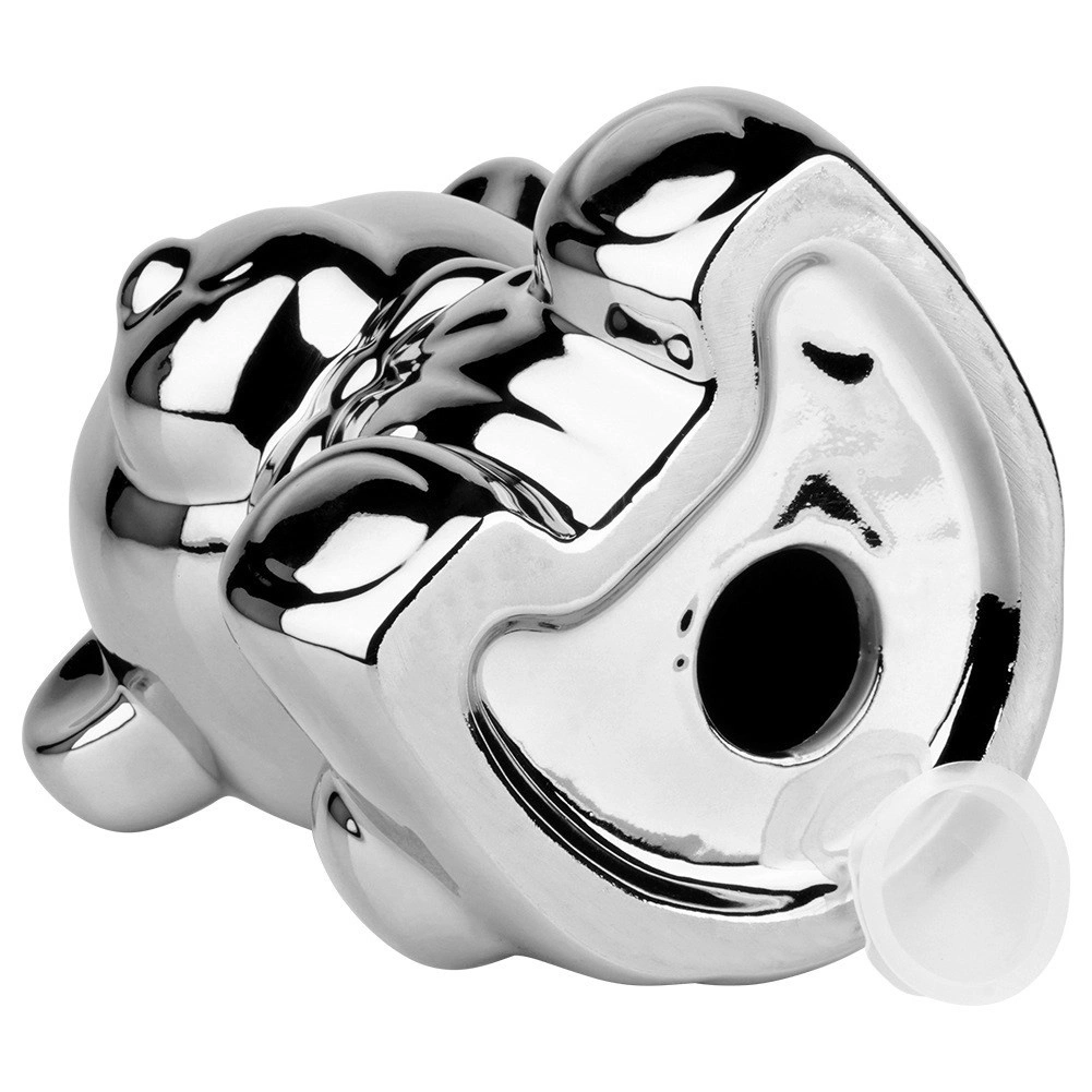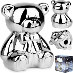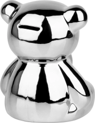 Táto strieborná keramická pokladnička v tvare medvedíka spája moderný glamour dizajn s praktickým využitím. Zrkadlový lesk dodá interiéru nádych luxusu a súčasne motivuje k pravidelnému sporeniu mincí aj bankoviek.