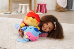 Privítajte do detskej izbičky legendárneho macka WINNIE THE POOH v kolekcii Snuglets. Plyšák v ležiacej polohe jemne objíme, poslúži ako hebká opora aj pohodlný vankúšik na oddych. Vďaka ultra mäkkému plyšu a starostlivo vyšitým detailom pôsobí priateľsky a hrejivo – presne tak, ako si deti želajú.