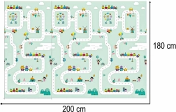 Obojstranná penová podložka s rozmermi 180 × 200 × 1 cm vytvára bezpečný a pohodlný priestor na hru, prvé pretáčanie aj lozenie. Hustá XPE pena tlmí nárazy, chráni pred chladom od podlahy a protišmyková textúra zaisťuje stabilitu pri pohybe. Jedna strana s roztomilými pandami a druhá s cestným motívom podporujú fantáziu aj učenie.