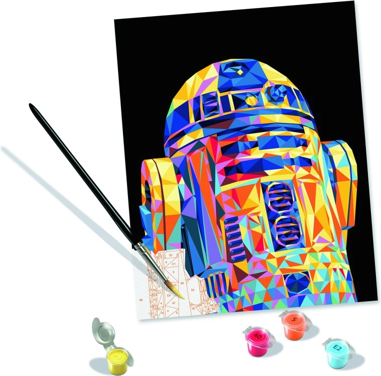 Staňte sa na chvíľu maliarom a namaľujte si vlastné dielo s ikonickým droidom R2‑D2. Vďaka očíslovaným plochám a priloženému návodu je proces jednoduchý a pritom maximálne uspokojujúci. Vykreslené plochy vytvárajú čistý a detailný obraz, ktorý po zaschnutí vložíte do priloženého rámika.