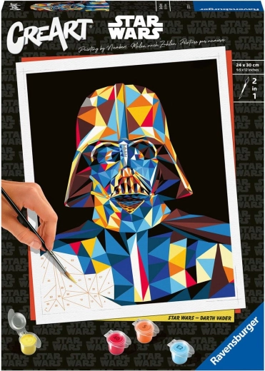 Objavte kreatívnu zábavu s pomocou sady CreArt Maľovanie podľa čísel s motívom STAR WARS: Darth Vader. Set obsahuje všetko potrebné – pevné plátno 24 × 30 cm, akrylové farby, štetec, stojan na kelímky a rámček. Maľovanie podľa čísel je ideálne pre začiatočníkov aj pokročilých, rozvíja zručnosť a koncentráciu a prináša radosť z vlastného profesionálne vyzerajúceho diela.