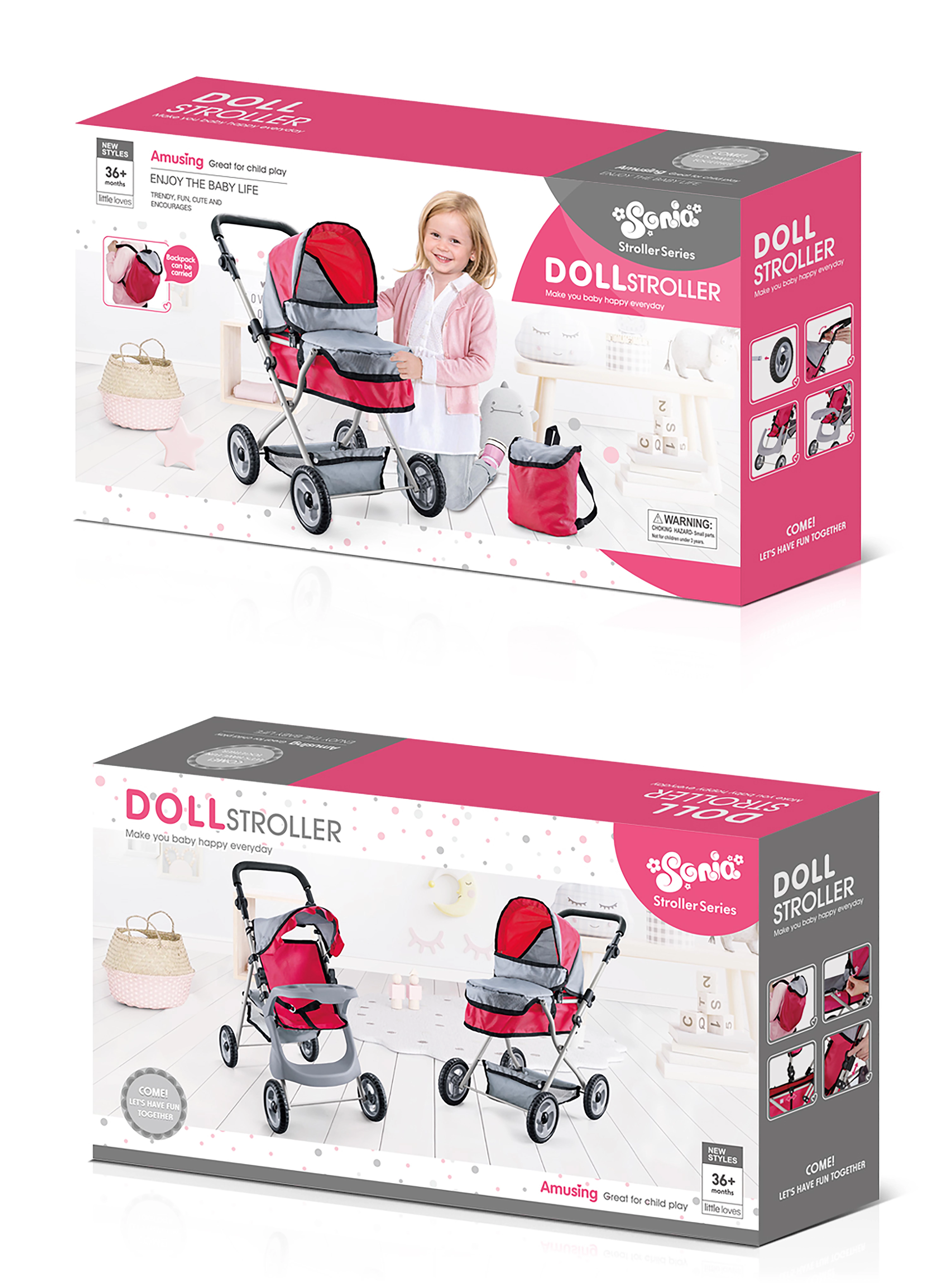Kočík je navrhnutý tak, aby sa deťom dobre ovládal doma aj vonku. Jeho rozmery 37,5 × 64,5 × 66,5 cm z neho robia praktický doplnok na hranie, ktorý zároveň podporuje rozvoj kreativity a jemnej motoriky.
