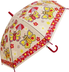 Na výber sú 3 veselé varianty: lienka, včielka a motýľ. Každý dáždnik má kontrastný lem a farebne zladené zakončenie špičky aj rukoväti. Ideálny do škôlky, na prechádzky aj na cesty.