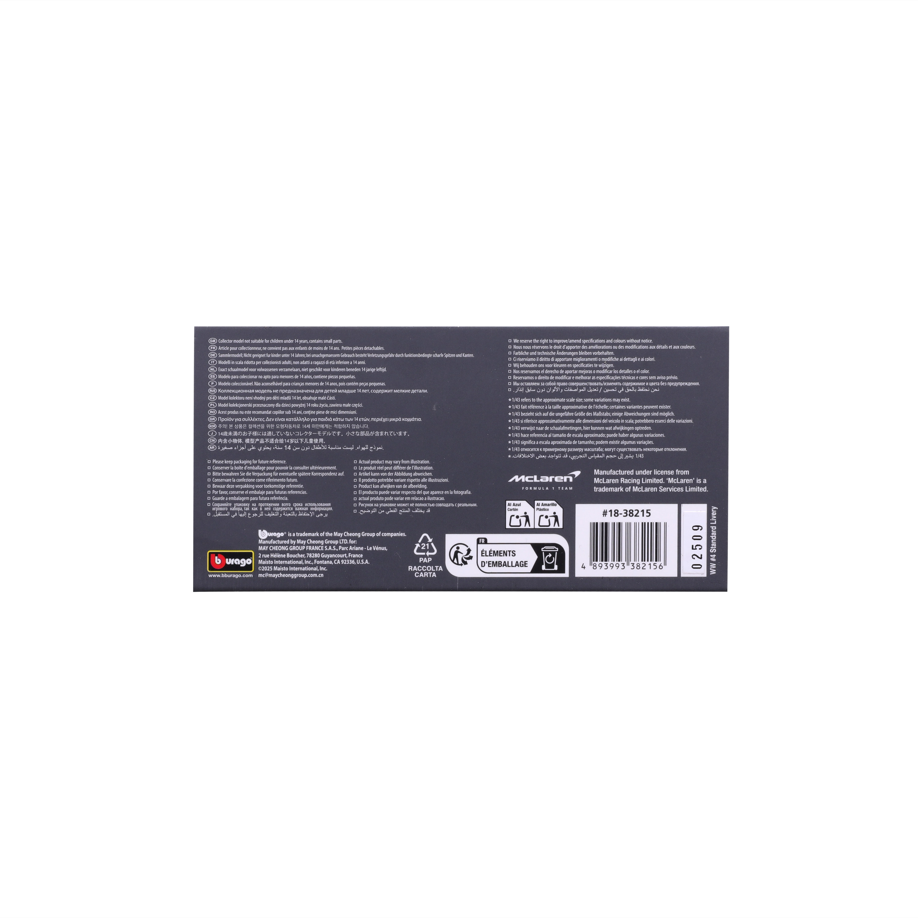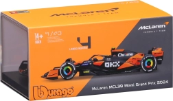 Zbierajte rýchlosť a štýl s oficiálnym modelom McLaren MCL38 (sezóna 2024) v mierke 1:43 od Bburago. Tento detailne spracovaný monopost s číslom 4 – Lando Norris ponúka realistické spracovanie, autentické tímové dekory a figúrku pilota v kokpite. Ideálne pre zberateľov aj fanúšikov F1, dodáva sa v ochrannej vitríne/krabičke na štýlové vystavenie.