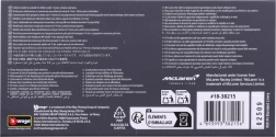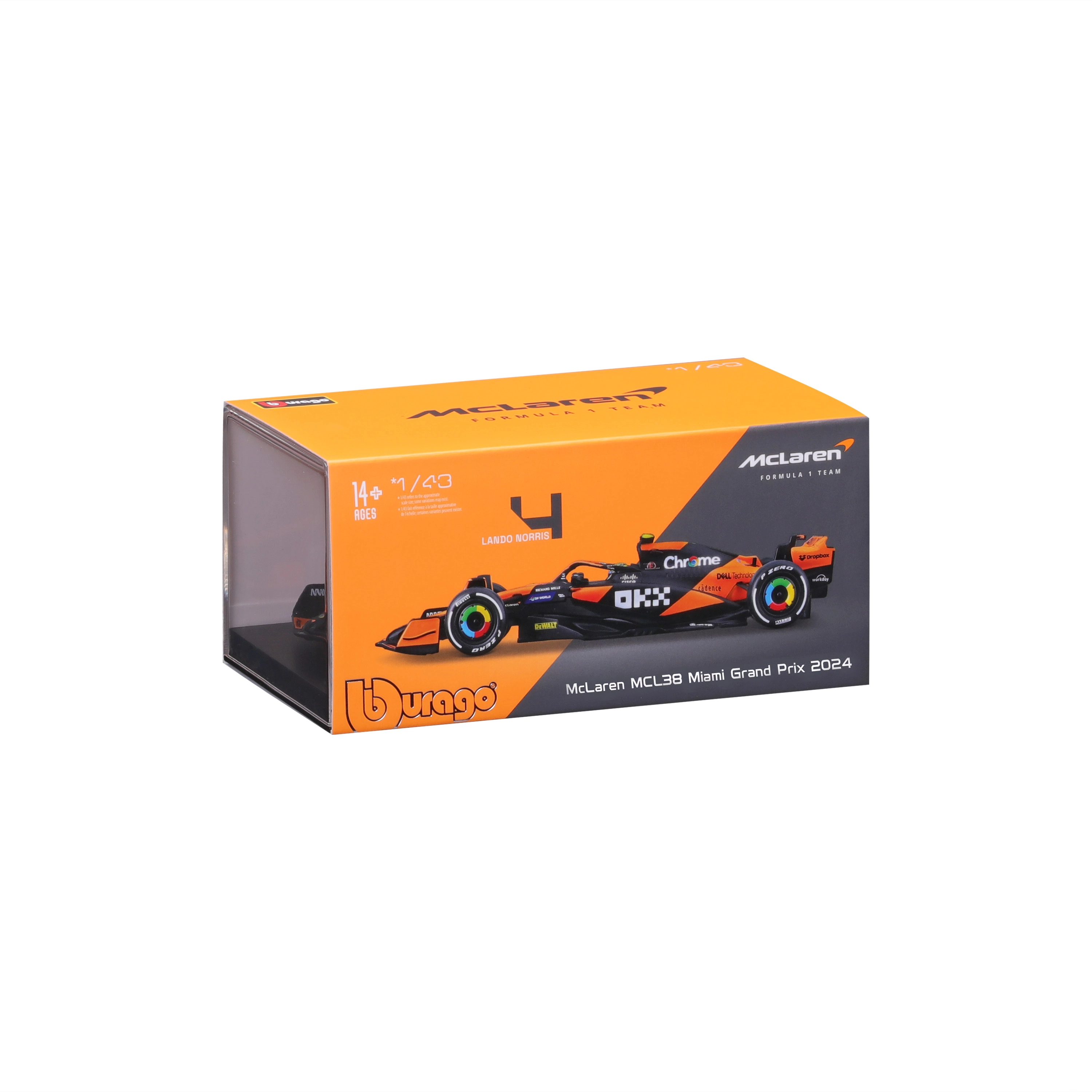 Oficiálne licencovaný model McLaren MCL38 2024 v mierke 1:43 od Bburago zachytáva aktuálny monopost Landa Norrisa s ikonickým oranžovo‑čiernym lakovaním a sponzorskými logami. Vďaka presným proporciám, tvarom aerodynamiky a detailnému kokpitu s figúrkou pilota je ideálny do vitríny aj ako darček pre fanúšikov Formuly 1.