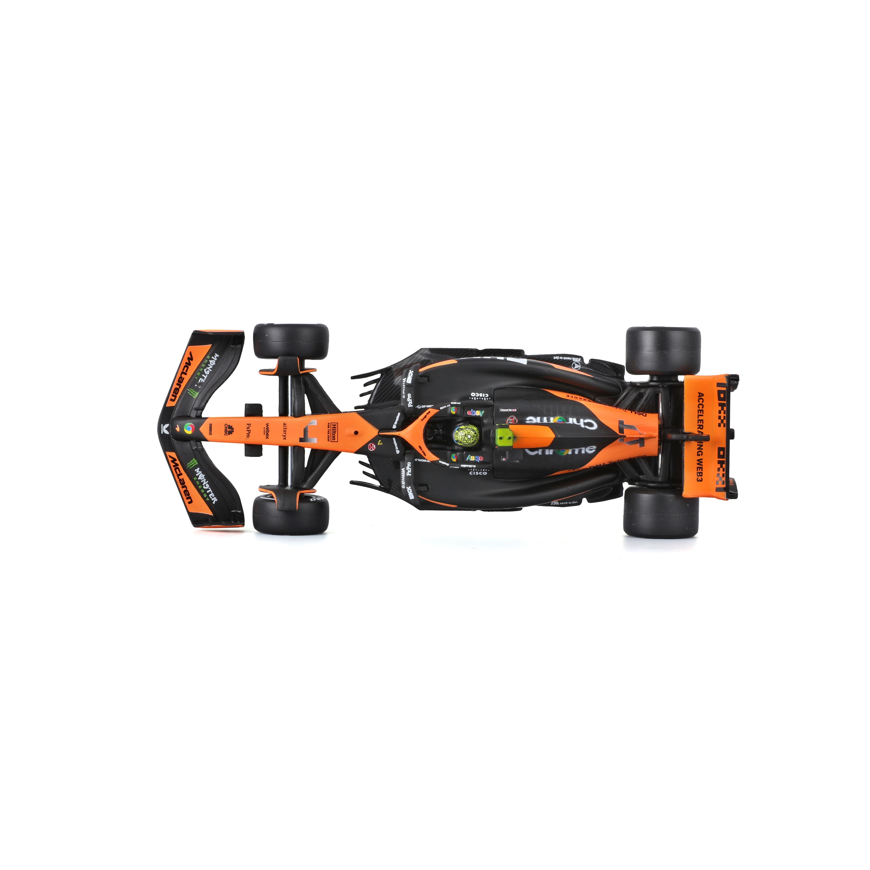 Detailné oranžovo‑čierne sfarbenie, sponzorské logá a číslo 4 – všetko podľa skutočného monopostu Landa Norrisa zo sezóny 2024.
