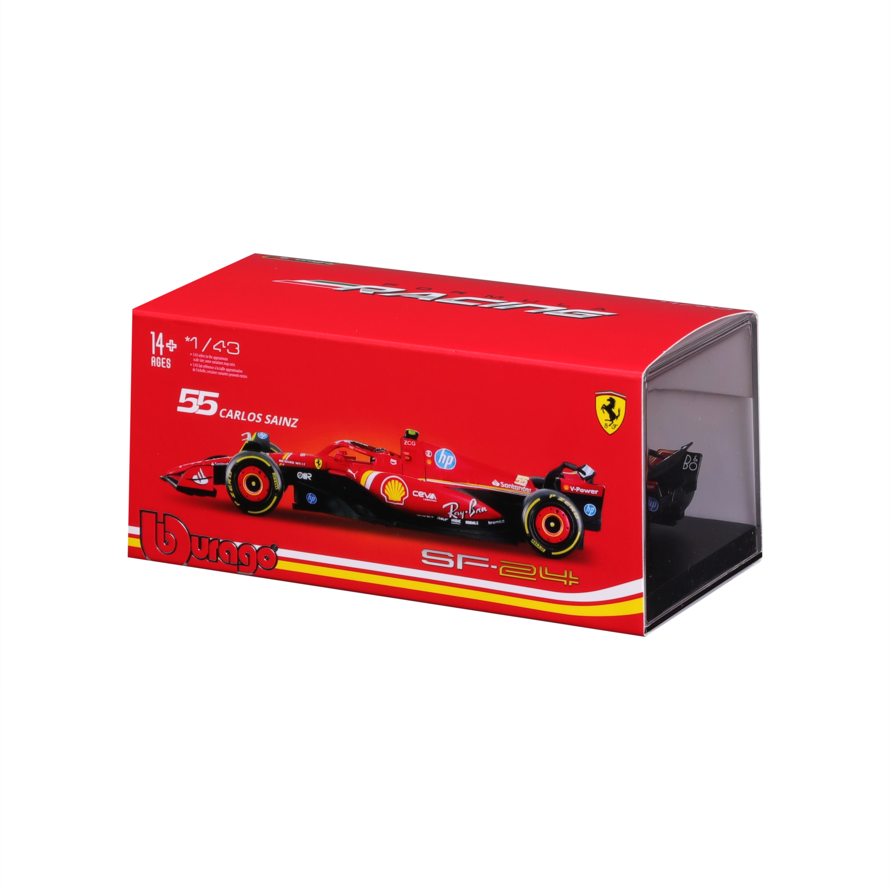 Zberateľské auto pre fanúšikov F1: detailný model monopostu Ferrari SF-24 v mierke 1:43 s jazdcom Carlosom Sainzom, kovovo-plastové prevedenie, realistické detaily, otáčajúce sa kolesá a vitrínový box pre bezpečné vystavenie.