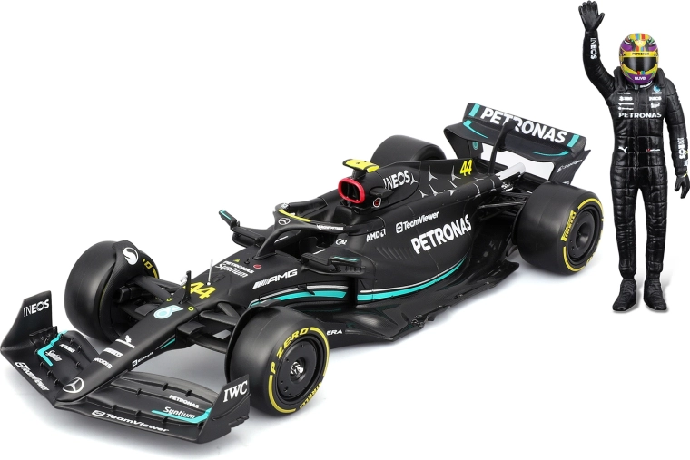 - Figúrka jazdca LEWIS HAMILTON na scénické vystavenie vedľa vozidla.