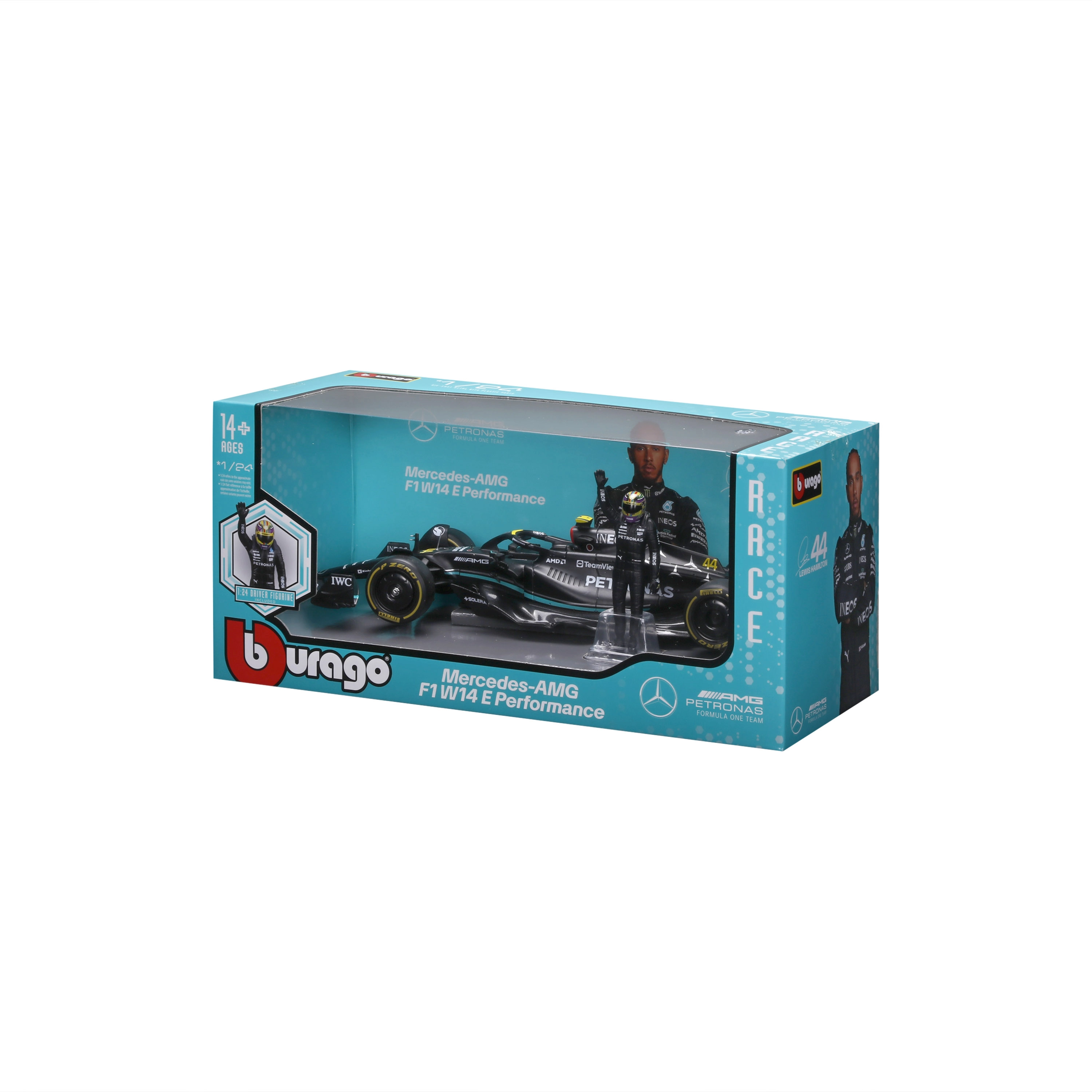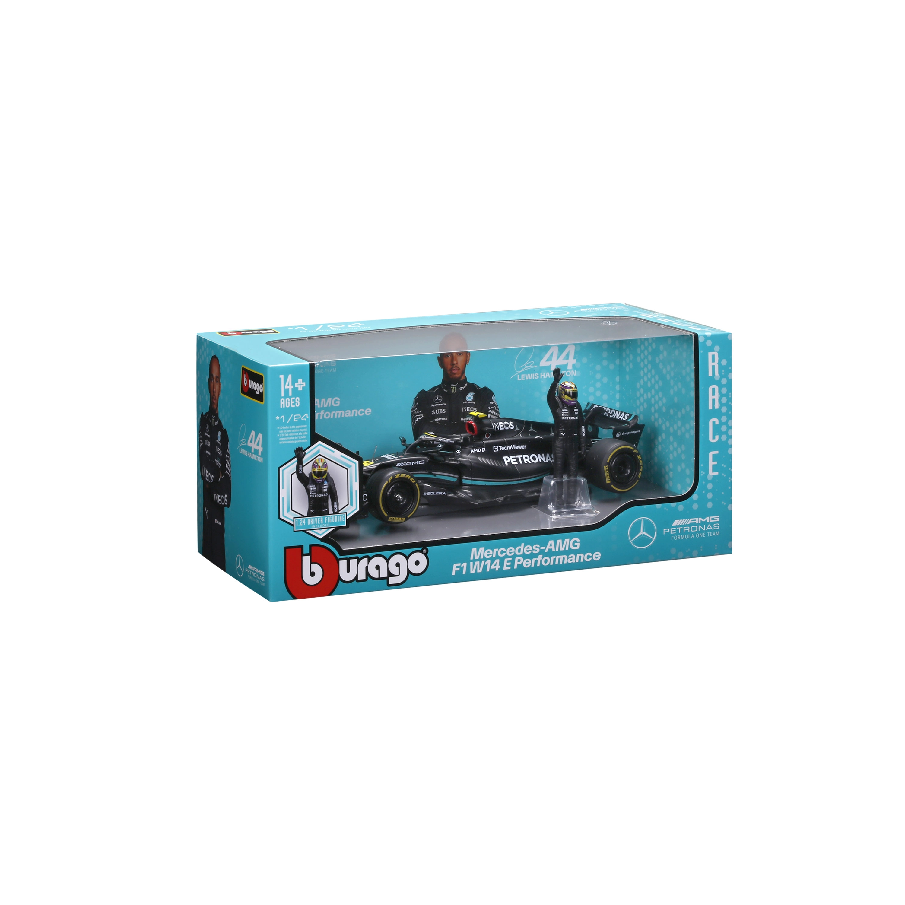 Ikonický monopost MERCEDES-AMG F1 W14 E v mierke 1:24 od značky Bburago prináša vernú repliku vozidla s číslom 44 pilota LEWIS HAMILTON. Model zaujme detailným spracovaním, realistickým lakovaním a sponzorskými logami, otáčajúcimi sa kolesami a priloženou figúrkou jazdca. Ideálne pre zberateľov aj ako štýlový darček v darčekovom boxe.