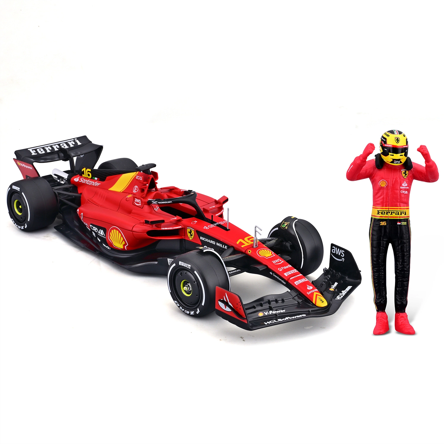 Súčasťou balenia je štýlová figúrka pilota ladiaca s monopostom – ideálne pre dynamické display zostavy.
