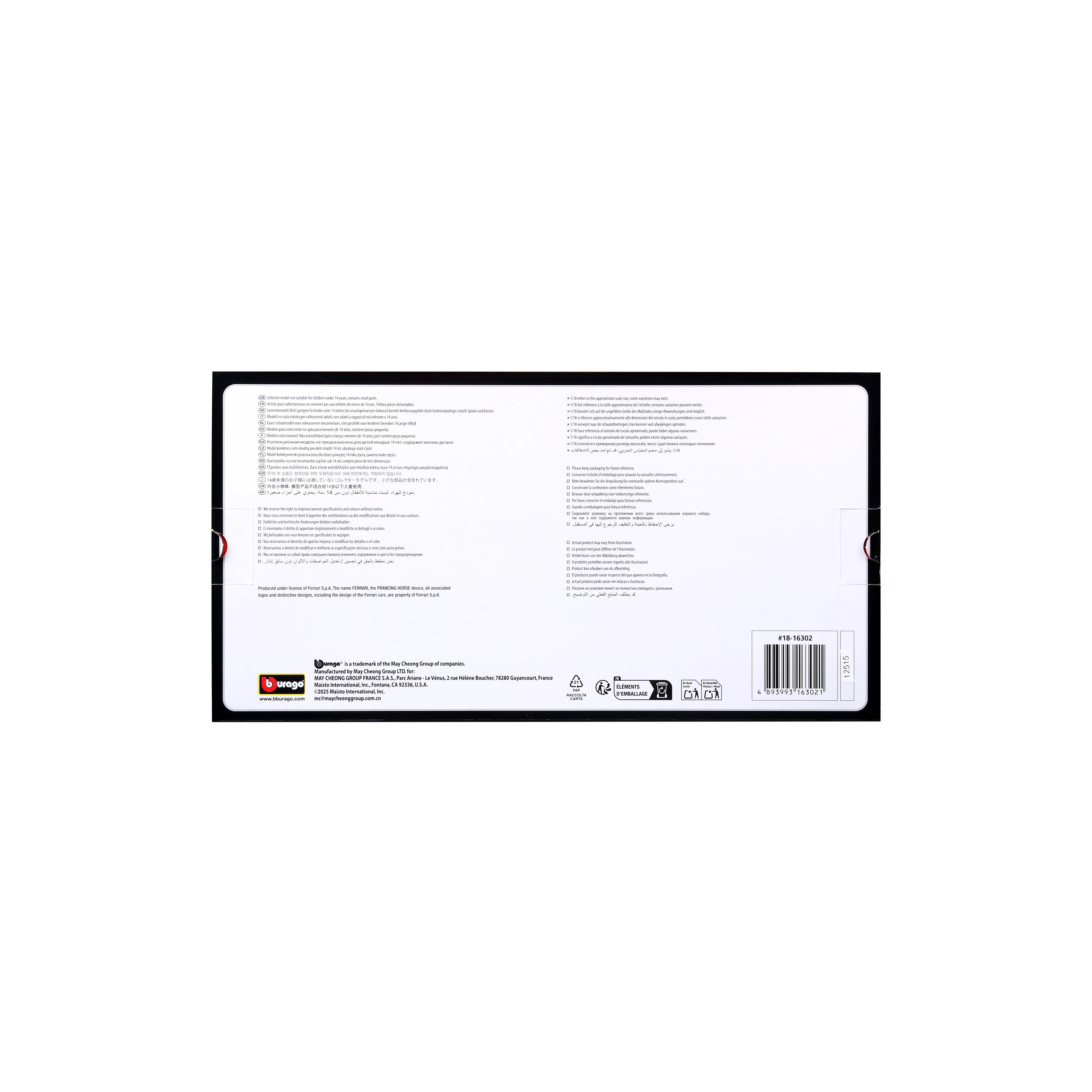 Model má kvalitné spracovanie karosérie s ostrými líniami, presnými potlačami a funkčnými prvkami, ako sú otváracie dvere a otáčajúce sa kolesá. Dodáva sa v atraktívnom darčekovom balení Bburago s priehľadným okienkom, čo z neho robí skvelý darček pre fanúšikov motoršportu aj značky Ferrari.