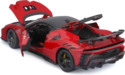 Tento červený model Ferrari SF90 XX Stradale od Bburago v mierke 1:18 ponúka špičkové spracovanie exteriéru aj interiéru. Nájdete tu výrazné aerodynamické prvky, dominantné krídlo, presne tvarované svetlomety a autentické detaily kokpitu vrátane športových sedadiel.
