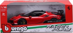 Precízny zberateľský model vozidla Ferrari SF90 XX Stradale v mierke 1:18 s otváracími dielmi, detailným interiérom a otáčajúcimi sa kolesami. Ideálne do vitríny aj na jemné hranie, poteší vernými proporciami, športovou aerodynamikou a kvalitným spracovaním značky Bburago.