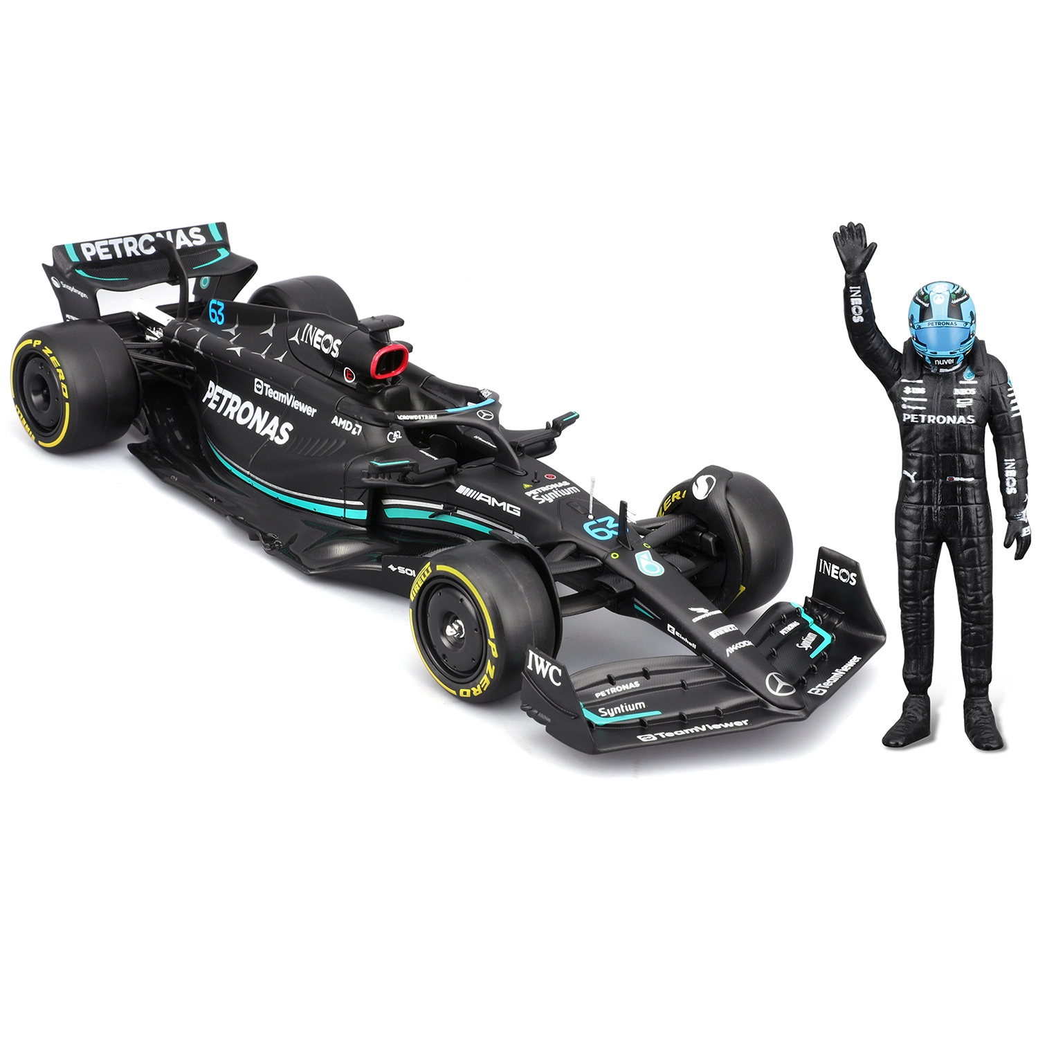 Súčasťou je dekoratívna figúrka pilota George Russella a kvalitná potlač livery so sponzormi, ktorá podčiarkuje vernosť originálu. Model je ideálny na display, do vitríny aj ako darček pre fanúšikov F1.