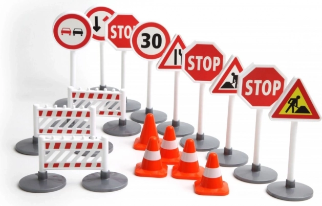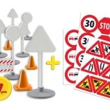 Kompletný výber základných značiek (STOP, obmedzenie rýchlosti, práce na ceste a i.) pre zábavné učenie pravidiel cestnej premávky.