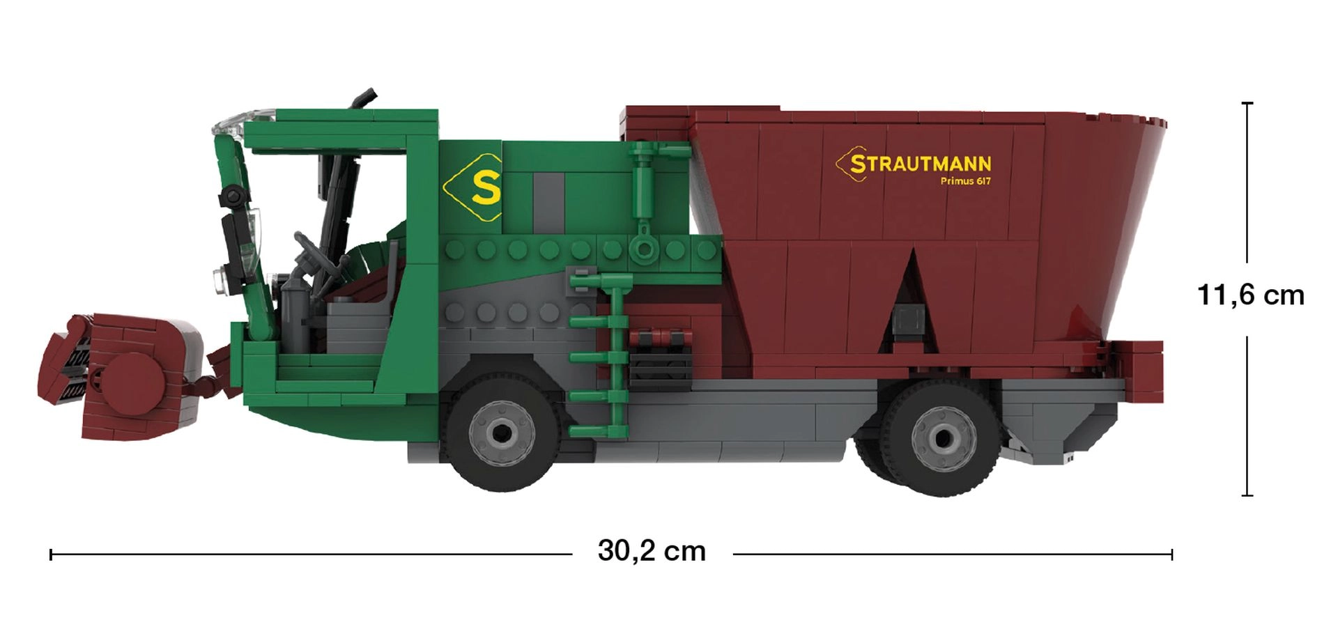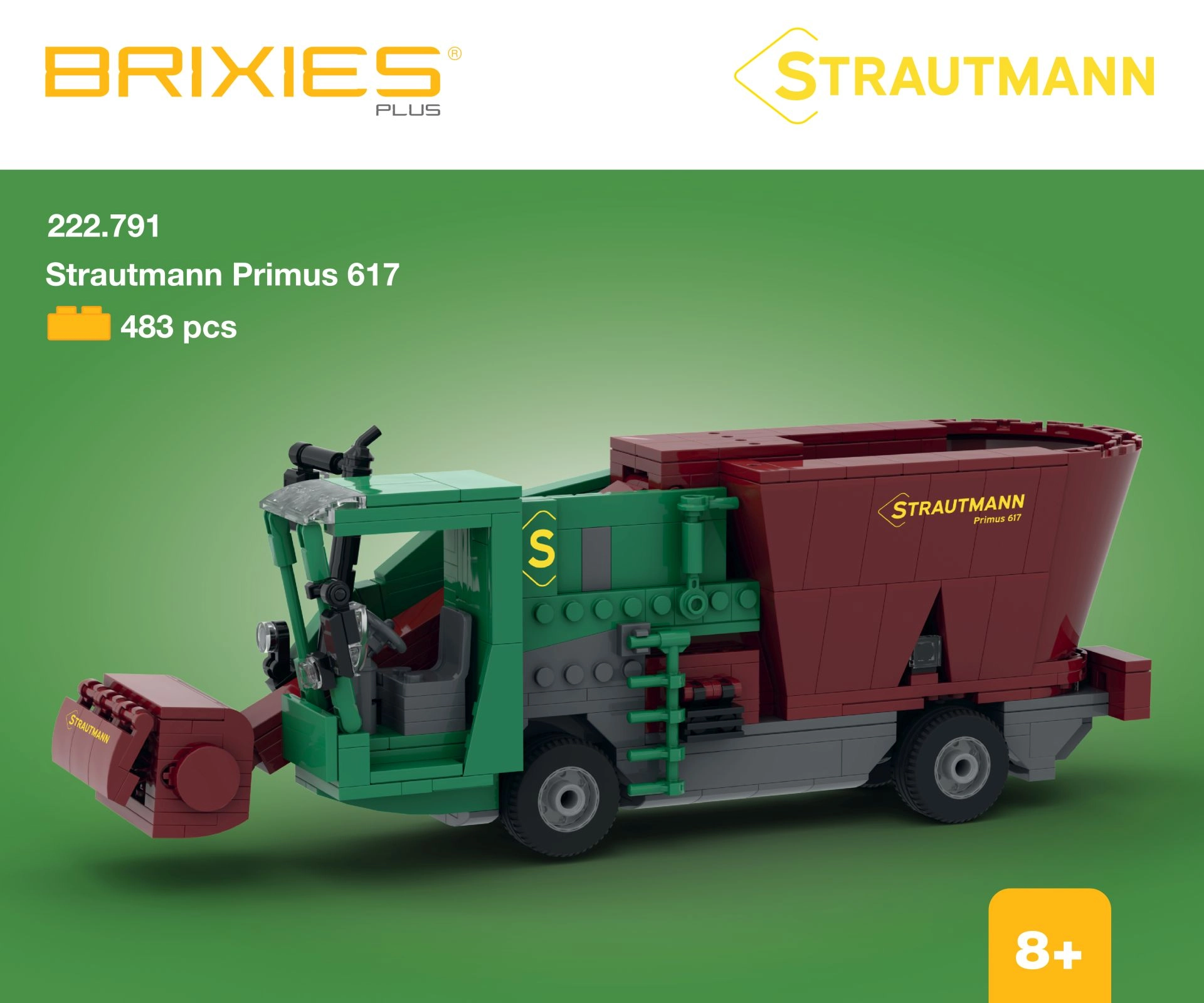 Postavte si detailný model miešacieho kŕmneho vozidla STRAUTMANN PRIMUS 617 zo série BRIXIES Plus. Stavebnica s 483 dielikmi verne zachytáva charakteristické prvky skutočného stroja a po zostavení meria približne 30,2 × 11,6 × 9 cm (d × v × š). Vďaka väčším dielikom je vhodná pre deti od 6–8 rokov a je kompatibilná s inými stavebnicami kociek podobného typu.