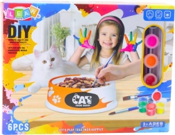 Táto kreatívna sada umožní deťom navrhnúť a pomaľovať vlastnú keramickú misku pre mačku. Vďaka priloženým farbám a štetcu môžu kombinovať farby, vytvárať vzory a dodať miske osobitý štýl. Hotový výrobok poslúži ako praktická miska na krmivo alebo originálna dekorácia do detskej izby.