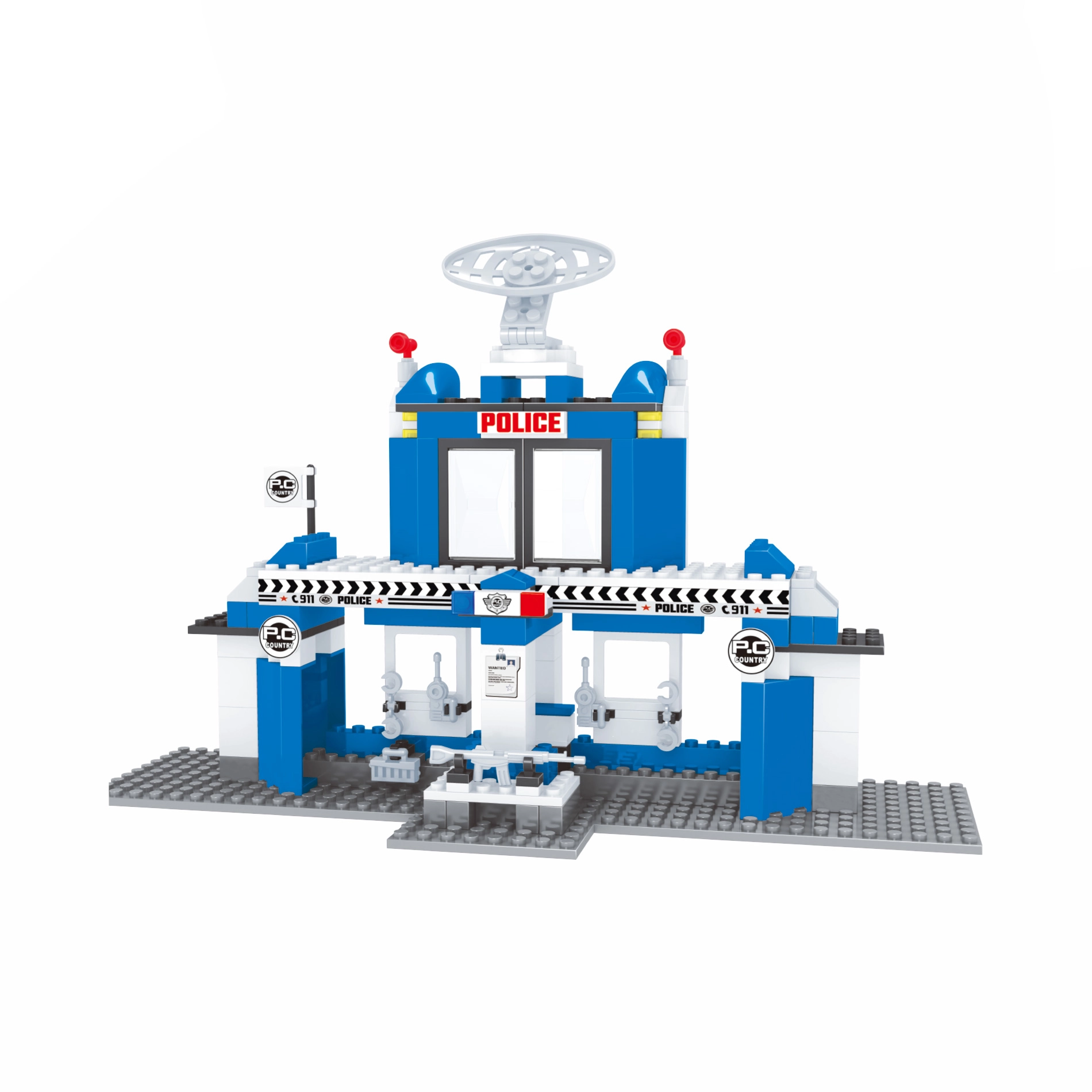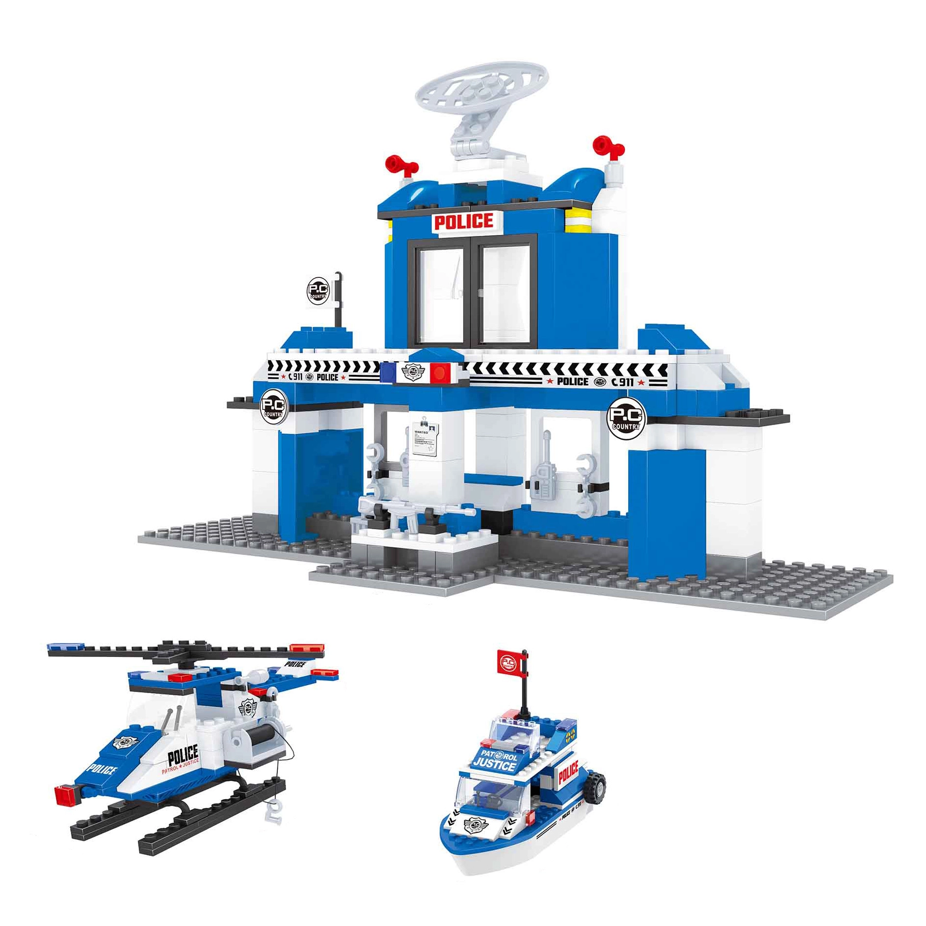 Súčasťou sú prvky ako posuvné dvere, veža s radarom, priezorné okienka a tematické potlače „POLICE“ a „911“, ktoré umocnia realistický vzhľad. Diely sú plne kompatibilné s väčšinou bežných stavebníc, čo umožňuje neobmedzené kombinácie a rozširovanie.