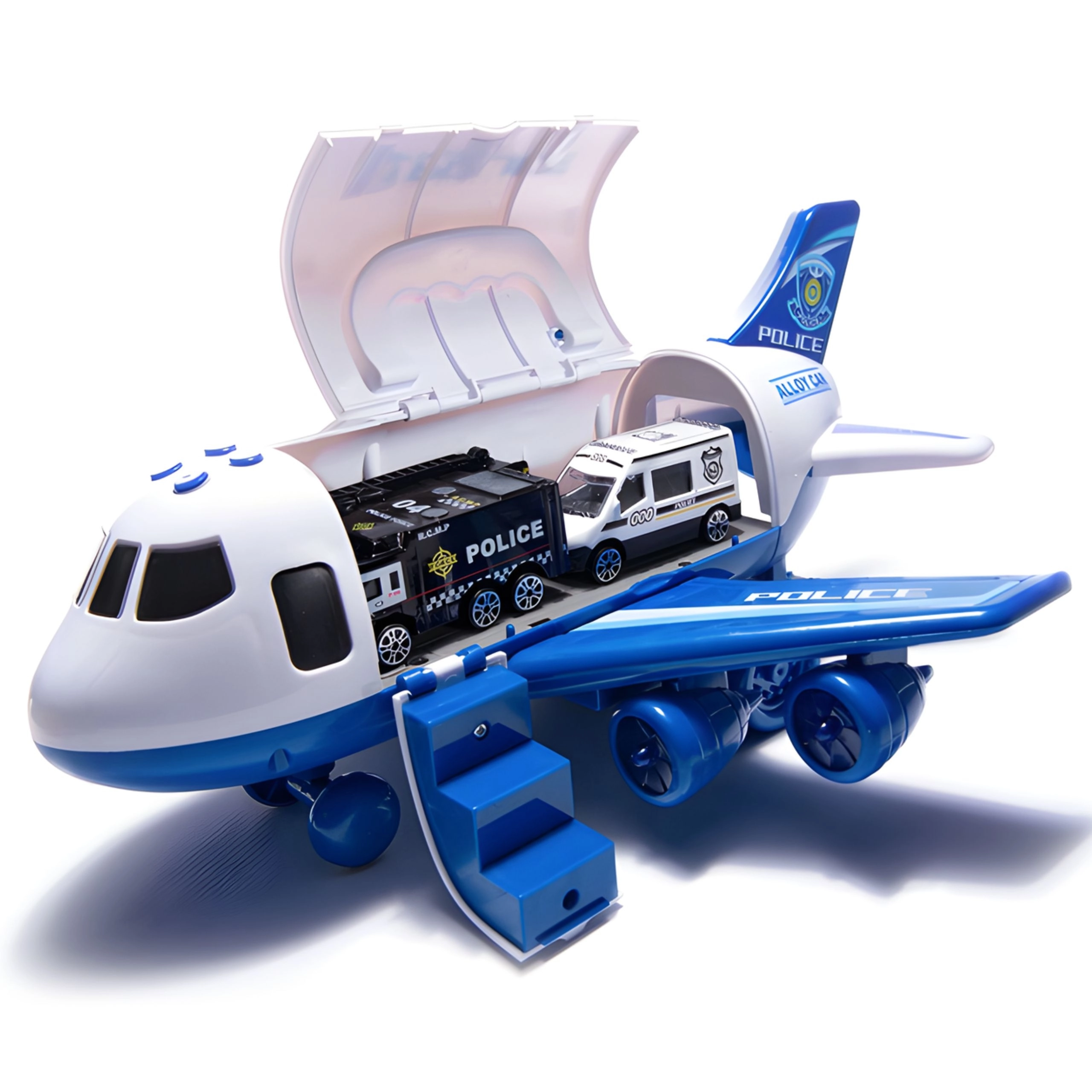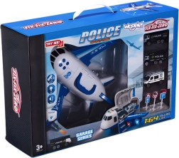 Vo vnútri lietadla preveziete 3 policajné autíčka a rozmiestnite 7 dopravných značiek pre akčné scenáre a výučbu pravidiel cestnej premávky.