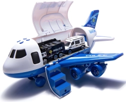 Policajné lietadlo–transportér WOOPIE je ideálna hračka pre malých strážcov zákona od 3 rokov. Ponúka dynamickú hru s ukladaním áut do trupu, blikajúce LED a reálne sirény na štyroch tlačidlách. Vďaka sklopnej rampe deti ľahko naložia vozidlá a vyrazia na záchrannú akciu.