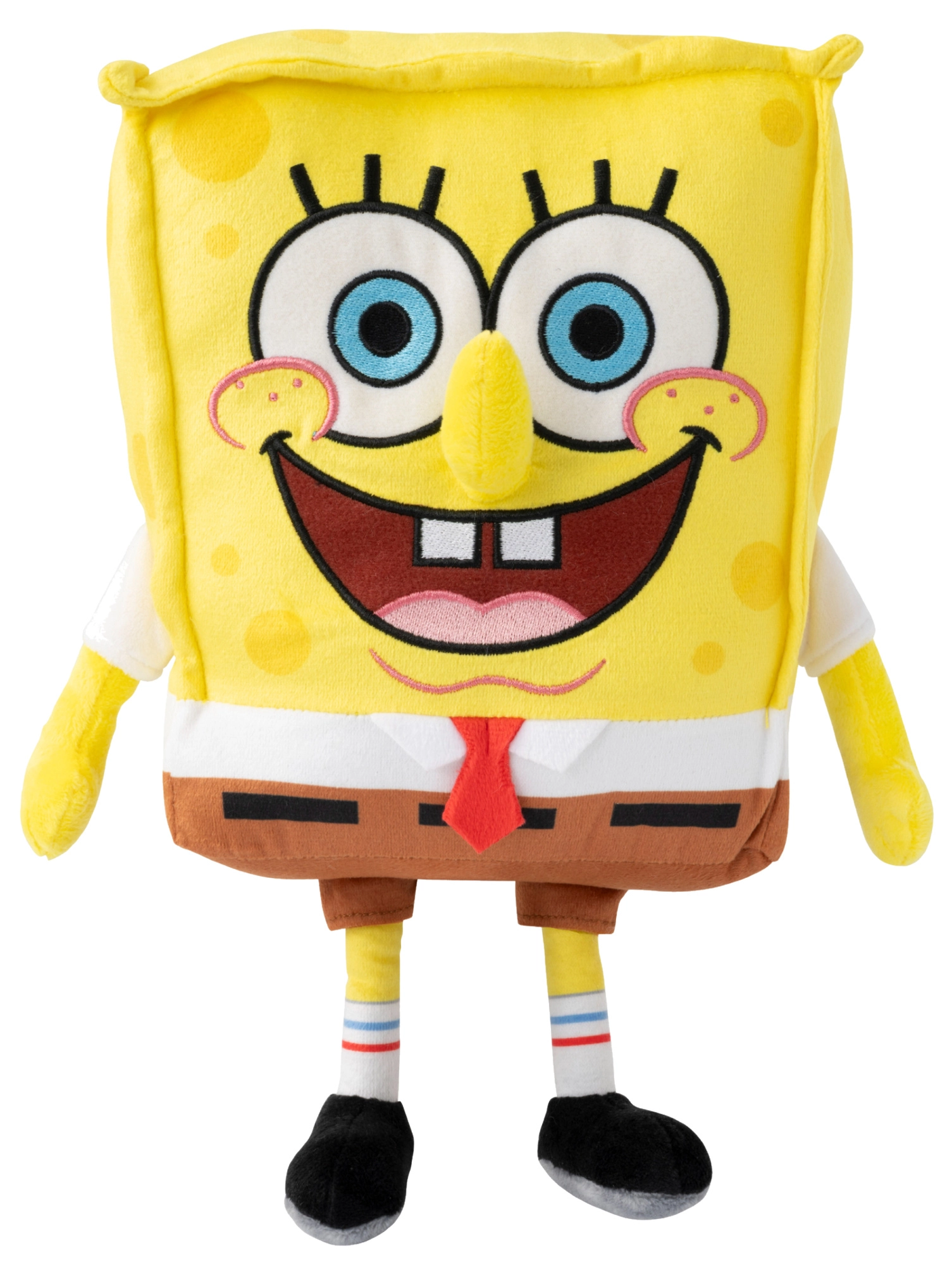 Tento veľký plyšový SpongeBob v žiarivo žltej farbe má svoj typický široký úsmev, modré oči, bielu košeľu, červenú kravatu a hnedé nohavice. Vďaka mäkkej výplni a príjemnému povrchu je skvelý na každodenné mojkanie aj chvíle oddychu.