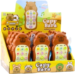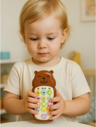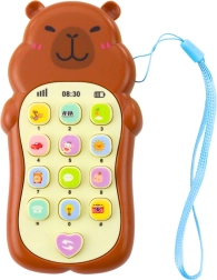 Roztomilý detský telefón v tvare kapybary kombinuje svetelné a zvukové efekty, farebné tlačidlá a pohodlný remienok na zápästie. Podporuje zmyslový rozvoj, koordináciu ruka–oko a prirodzené spoznávanie sveta cez melódie, zvuky zvieratiek a „telefonovanie na hranie“. Hladký povrch, ergonomický tvar a ľahká konštrukcia sú ideálne pre malé detské ruky.