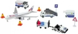 Tento detailne spracovaný letiskový set ponúka deťom všetko, čo potrebujú pre vlastnú prevádzku malého letiska. Súčasťou je veľké lietadlo, dve servisné vozidlá a cateringové auto, doplnené nevyhnutným príslušenstvom a značkami pre bezpečnú prevádzku.
