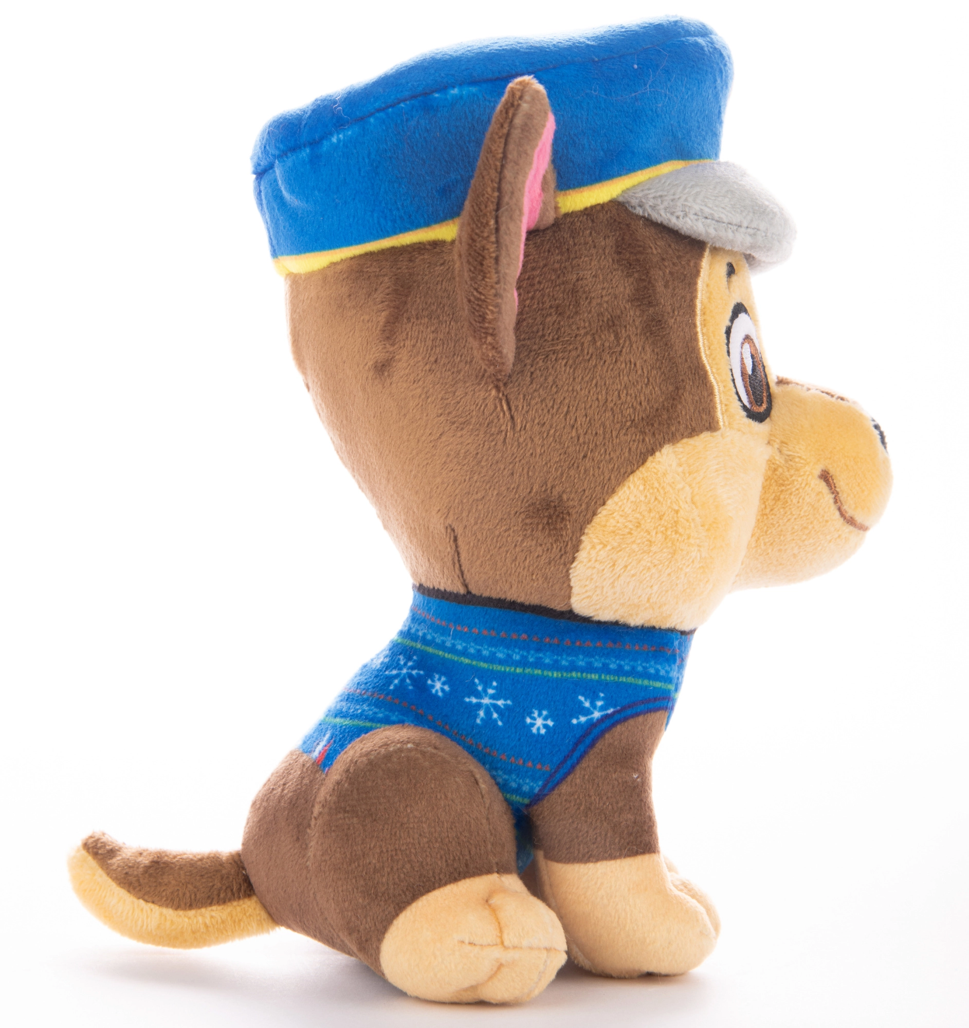Plyšák Chase, obľúbený policajný psík z kultového seriálu PAW PATROL, prichádza v zimnej edícii s modrým vianočným svetríkom s jemným vzorom. Vďaka kvalitnému spracovaniu, vyšívaným detailom a mimoriadne príjemnému povrchu si ho deti rýchlo zamilujú.