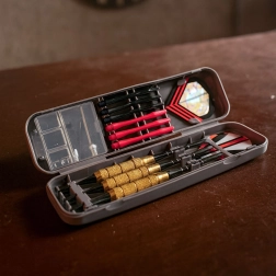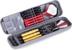 Kompletná sada šípok na domáce zábavy aj tréning. Obsahuje 3 hotové mosadzné šípky 17 g, náhradné hroty, násadky a krídelká a praktické puzdro. Rýhované (knurled) gripy pre istý úchop a presnú trajektóriu letu na klasické sisalové terče.