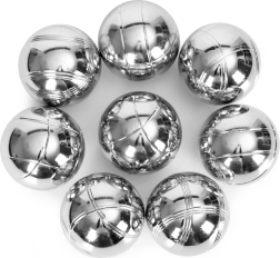 Lesklé oceľové gule s vyrytými líniami zaisťujú istý úchop a rýchle rozpoznanie počas hry. Odolná konštrukcia je pripravená na vonkajšie použitie.