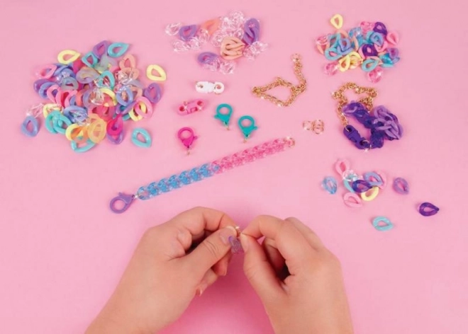 Objavte zábavu, štýl a kreativitu s touto sadou na výrobu náramkov. Kombinujte trendy farebné komponenty v dvoch veľkostiach, miešajte matné a nepriehľadné spojky a vytvorte si nekonečné originálne kombinácie. Ideálne pre deti od 8 rokov.