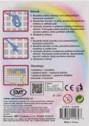 - Plastová doštička/rámček, papierová predloha, ihla, 6 bavlniek