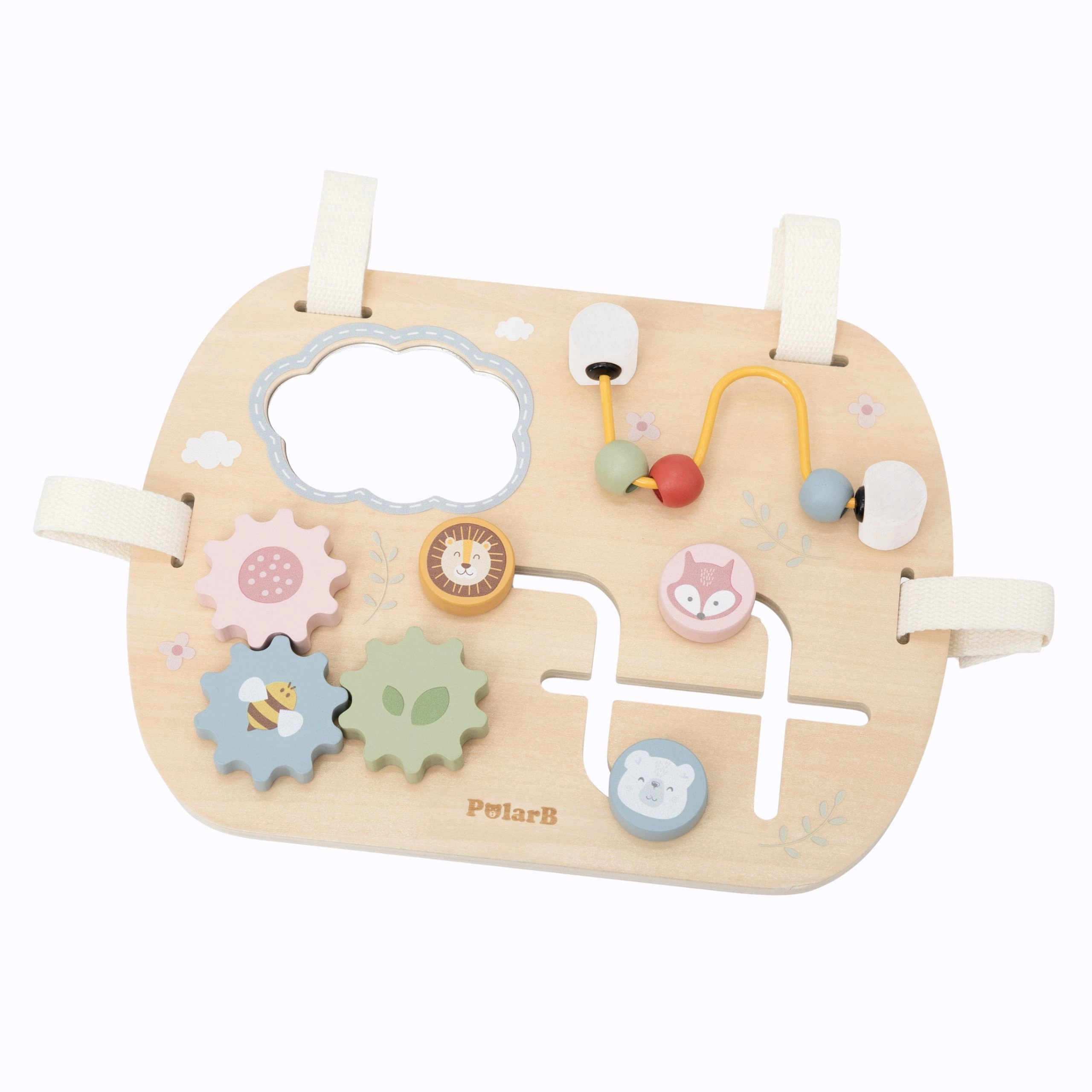 Manipulačná tabuľa VIGA PolarB kombinuje bezpečné drevo, premyslený dizajn a jemné pastelové farby, aby deti zaujala a zároveň rozvíjala ich zručnosti. Dieliky sa ľahko ovládajú, podporujú jemnú motoriku, vizuálno-motorickú koordináciu a logické myslenie. Vďaka štyrom bavlneným páskam so suchým zipsom ju možno pripevniť k postieľke či kočíku alebo ju používať voľne na rovnej ploche.
