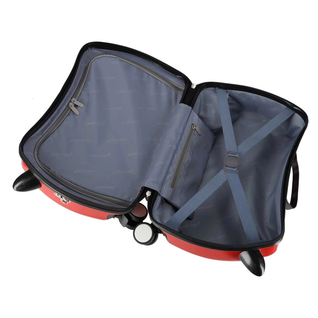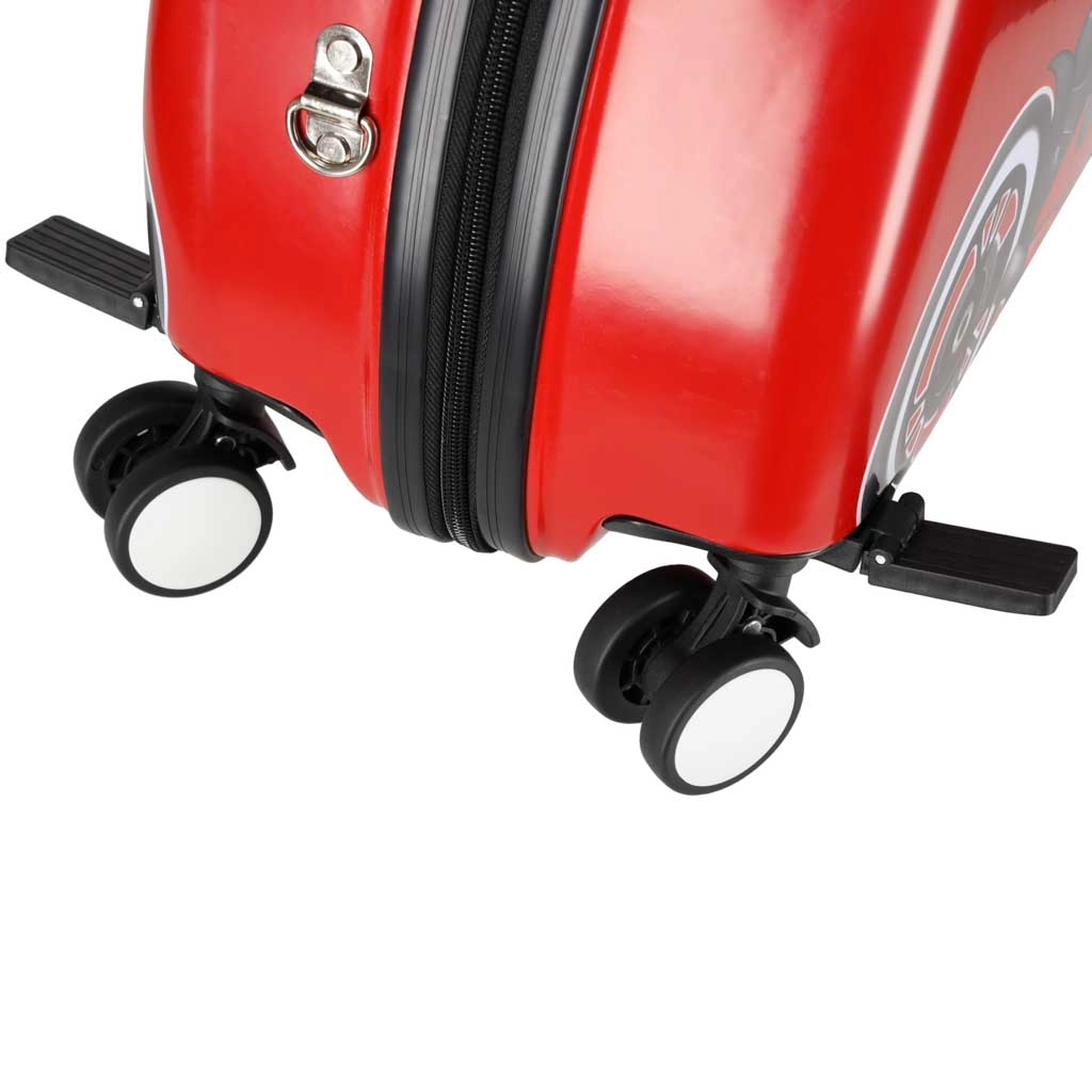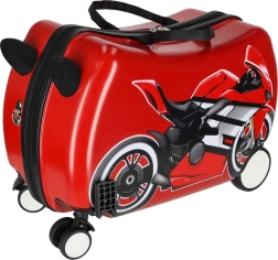 Detský kufor na kolieskach s motívom motorky premení čakanie na letisku aj cestovanie na zábavu. Dieťa si na kufor pohodlne sadne a môže sa nechať ťahať, zatiaľ čo stabilné rohy–úchyty vpredu zvyšujú bezpečný úchop pri jazde. Šikovná kombinácia dvoch pevných zadných kolies a dvoch predných otočných 360° zabezpečuje stabilitu a skvelú ovládateľnosť.
