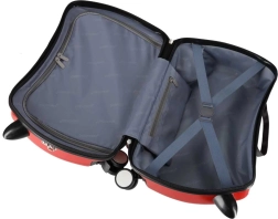 Dieťa si môže na kufor sadnúť a nechať sa ťahať. Predné „rohy” slúžia ako bezpečné úchyty a dvojúrovňové kolieska zaručujú stabilitu aj jednoduché manévrovanie.