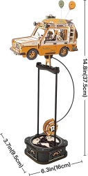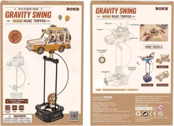 Road Tripper je premyslený mechanický model z prírodnej preglejky, ktorý po zostavení ožije vďaka zaťaženiu kyvadla a prevodom v základni. Voz inšpirovaný retro off-roadmi zaujme detailmi – vodič s kávou, verný pes na cestách, surf a kufor na streche aj balóniky, ktoré dotvárajú atmosféru dobrodružstva.