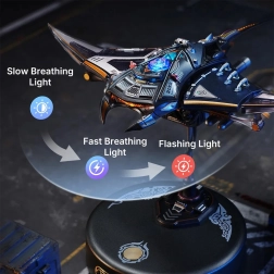 RoboTime 3D mechanická skladačka manta ray prináša do interiéru pôsobivú kombináciu techniky a prírodného pôvabu. Realistický šípový vzor a plynulý pohyb plutiev navodzujú dojem beztiažovej elegancie skutočnej manty. Po stlačení tlačidla sa prstné plutvy začnú kývať, chvost jemne kolíše a LED svetlá sa synchronne rozsviecujú.