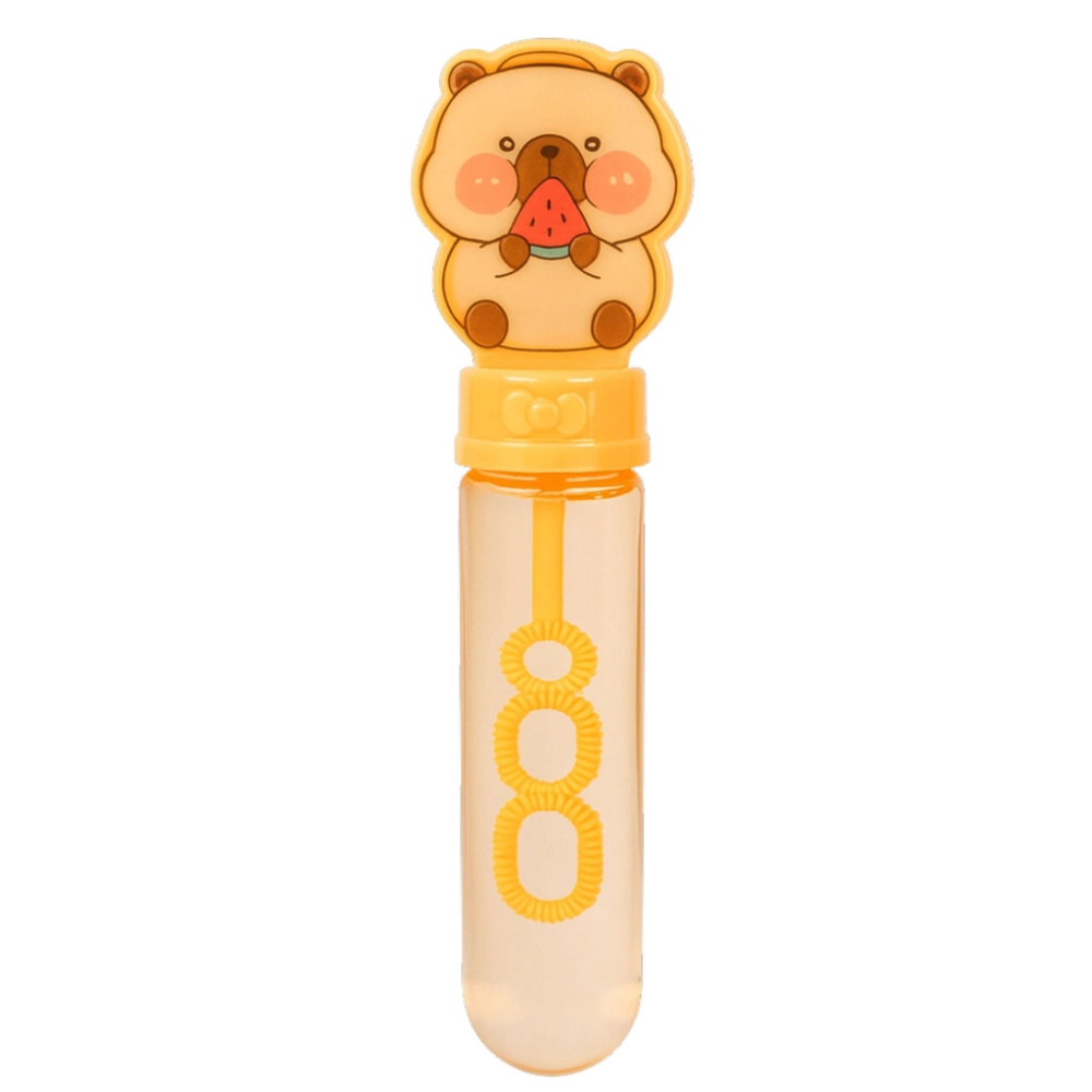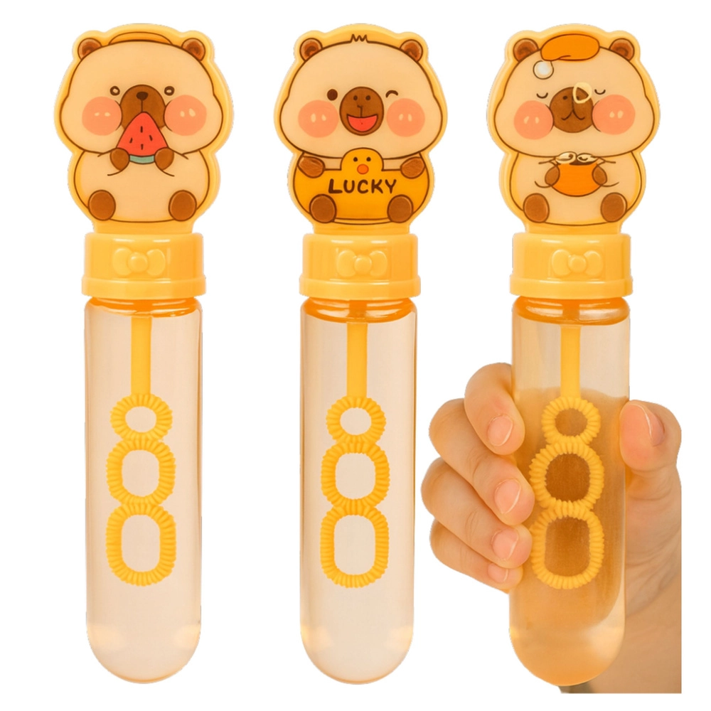 Roztomilý bublifuk s motívom kapybary a objemom 35 ml zaistí deťom hodiny zábavy doma aj vonku. Vďaka trojitému krúžku vytvoríte množstvo veľkých a farebných bubliniek jedným mávnutím. Ľahká, ľahko uchopiteľná tubička s priehľadným telom umožní kontrolu hladiny tekutiny – ideálne na záhradu, ihrisko aj narodeninové oslavy.