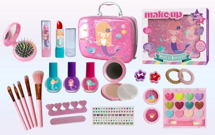 Táto detská kozmetická sada v elegantnom kufríku prináša všetko, čo malá vizážistka potrebuje na kreatívne líčenie. Všetky obsiahnuté produkty sú pravé, testované a bezpečné pre deti, takže sa môžu bez starostí hrať na salón krásy.