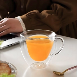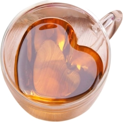 Elegantný sklenený hrnček v tvare srdca s objemom 250 ml z odolného borosilikátového skla s dvojitou stenou pre lepšiu tepelnú izoláciu. Skvele sa hodí na horúcu kávu, aromatický čaj aj studené nápoje a dezerty. Vďaka izolačnej konštrukcii nápoj dlhšie udrží teplotu, zatiaľ čo vonkajšia stena zostáva príjemne chladná pre bezpečné držanie.