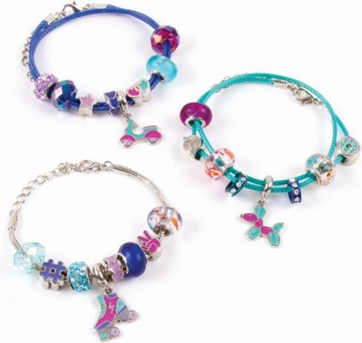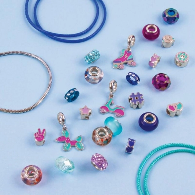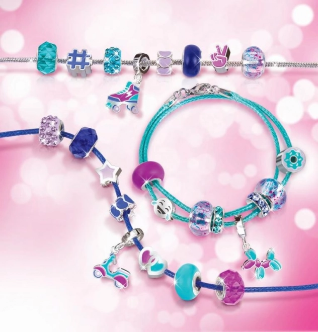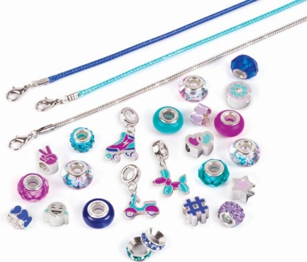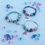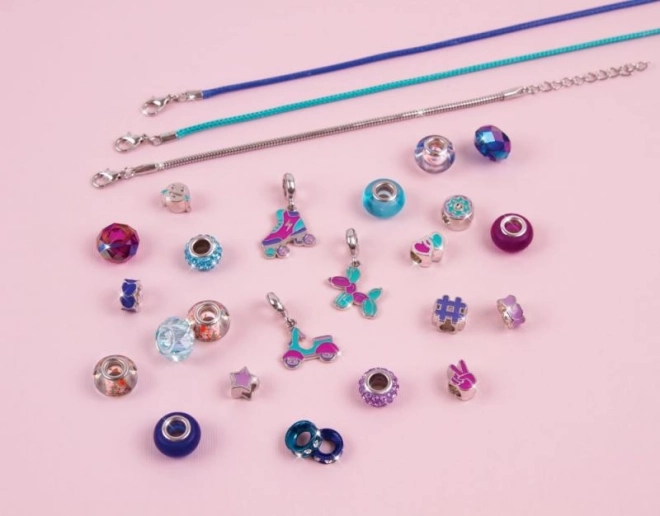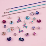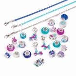 Mix strieborných, modrých a fialových korálikov dopĺňajú hravé prívesky, s ktorými si vytvoríte jedinečný šperk na mieru.