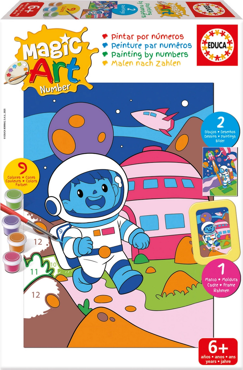 Objavte relaxačnú kreatívnu sadu pre malých aj veľkých – Maľovanie podľa čísel: Vesmír od EDUCA. Vďaka očíslovaným častiam na predlohe je tvorba obrazu jednoduchá a zábavná. Táto sada rozvíja sústredenie, jemnú motoriku a rozpoznávanie farieb, a pritom ponúka okamžitý pocit úspechu.