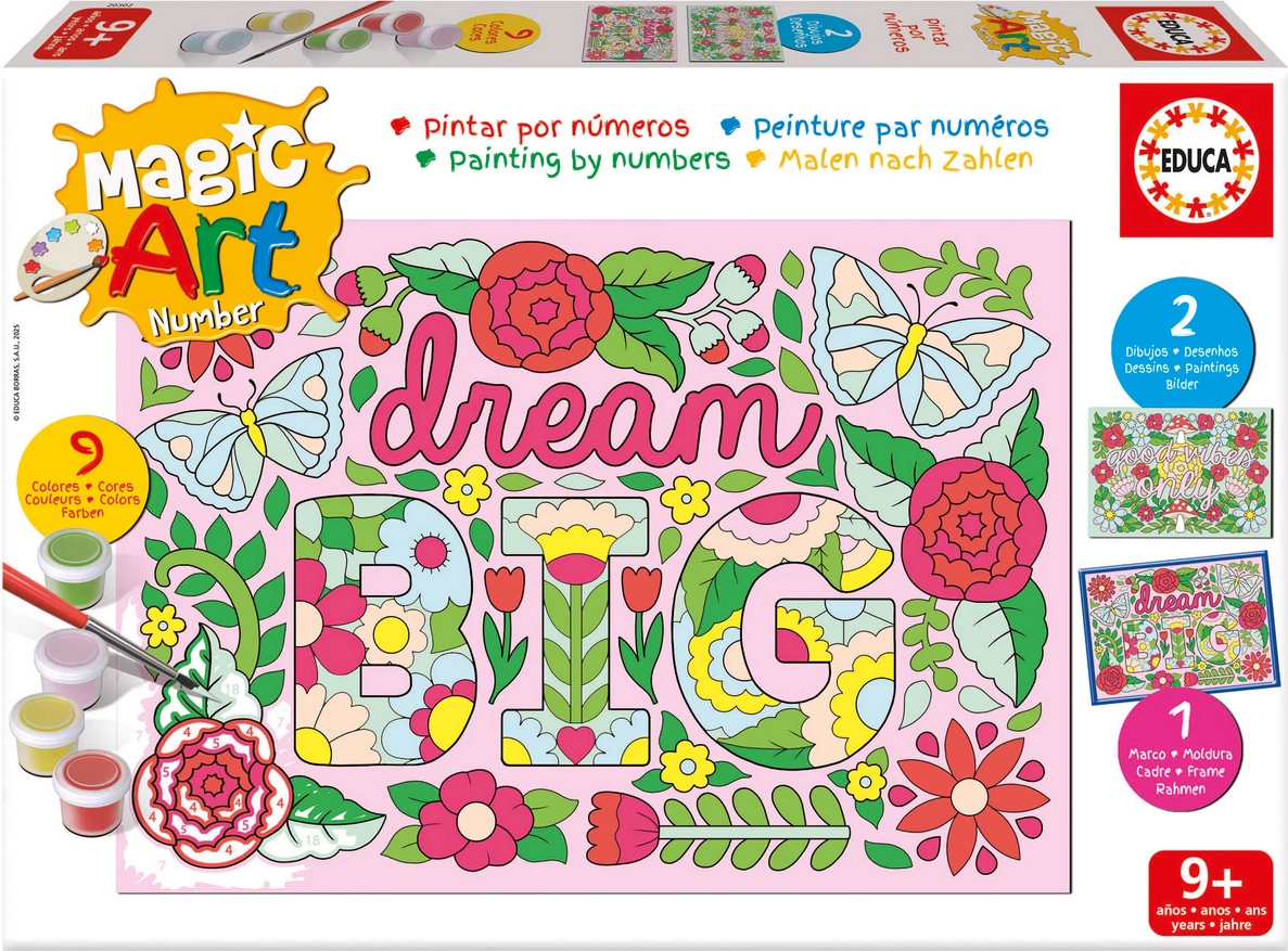 Objavte radosť z tvorenia so sadou Educa maľovanie podľa čísel – kvety. Vďaka predtlačeným segmentom a priloženým farbám je maľovanie jednoduché, zábavné a vhodné aj pre začiatočníkov. Aktivita rozvíja sústredenie, koordináciu a rozpoznávanie farieb.