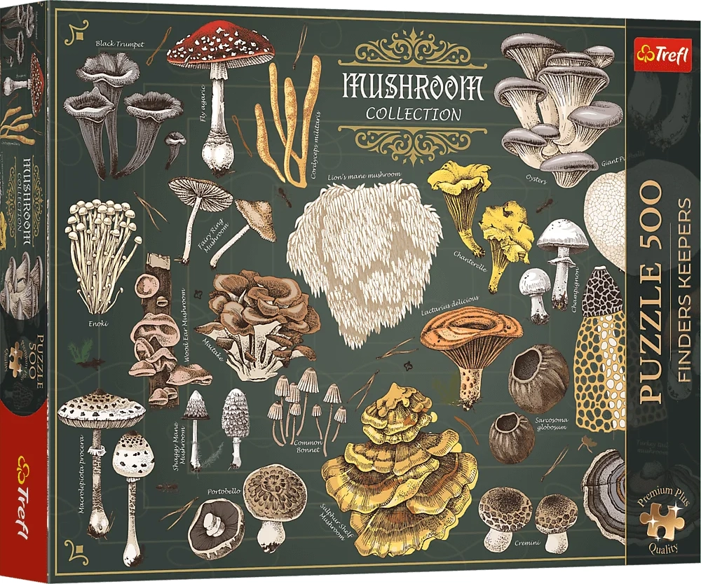 Objavte čaro lesa s puzzle TREFL Premium Plus Finders Keepers: huby s 500 dielikmi. Séria vyniká prémiovou kvalitou, starostlivo vybranými motívmi a FSC certifikáciou. Vďaka hrubšiemu kartónu dieliky lepšie držia pokope a unikátne tvary presne zapadajú. Súčasťou je predloha pre jednoduchšie skladanie.