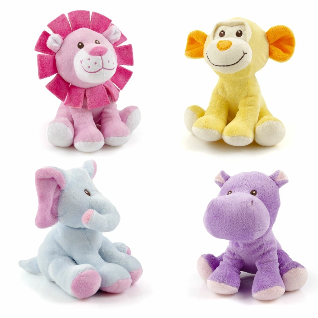 Objavte roztomilé plyšové zvieratká z džungle s výškou 15 cm – mäkučké hračky ideálne na maznanie aj ako dekorácia do detskej izby. Na výber je fialový hroch, žltá opička, ružový lev a modrý slon so šitými detailmi pre bezpečné hranie bez malých dielikov.