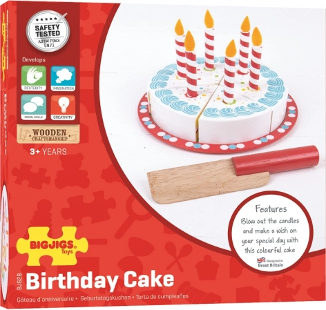 Objavte kúzlo oslavy s našou drevenou narodeninovou tortou na krájanie od Bigjigs Toys. Táto hračka je ideálna pre malé deti, ktoré sa učia o svete okolo seba prostredníctvom zábavných a interaktívnych hier. Torta je dostatočne veľká pre šesťčlennú hračkovú partiu a obsahuje aj drevený nôž pre ľahké krájanie.