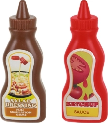 Pohárik na hranolky s jednotlivými kúskami a fľaštičky kečupu či omáčky dodávajú hre realistický nádych a učia deti servírovať ako v reštaurácii.