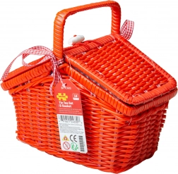 Červený prútený kôš uľahčuje prenášanie celej čajovej súpravy, čo z nej robí skvelého spoločníka na cesty.