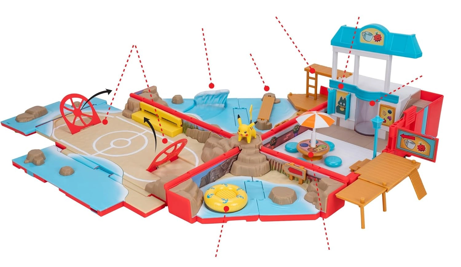 Oficiálne licencovaný produkt od Jazwares poteší detailným spracovaním a kompatibilitou s ďalšími bojovými figúrkami Pokémon. Deti si môžu vytvárať vlastné príbehy s obľúbeným hrdinom PIKACHU a objavovať nové scénky na pláži.