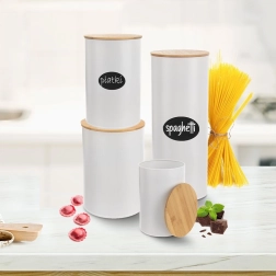 Minimalistické prevedenie v bielej farbe s prírodným drevom sa stane elegantným doplnkom linky aj otvorených políc. Dóza je univerzálna na každodenné používanie a pomôže vám udržať poriadok a čerstvosť v kuchyni.